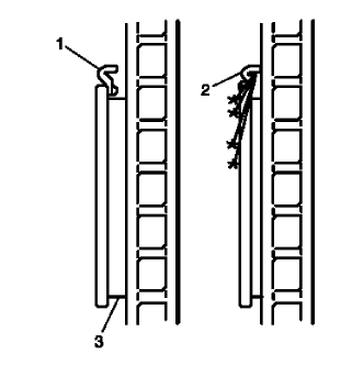 - Inspect both edges of the disc brake pad friction surfaces (3). The