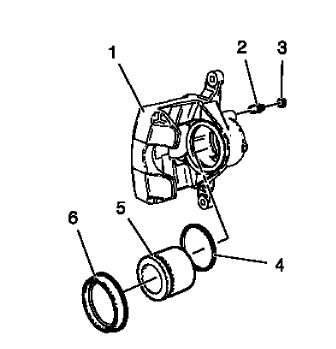 - Inspect the caliper piston dust boot seal (2) for cracks, tears, cuts,