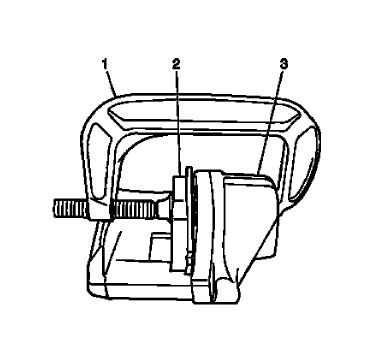 - Insert a discarded inner brake pad (2) or block of wood in front of the