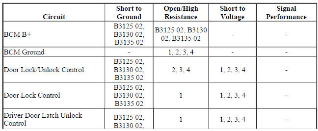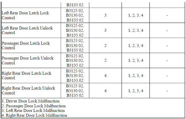 Chevrolet Trax: DTC B3125, B3130, OR B3135: Driver door only unlock/all doors lock/unlock