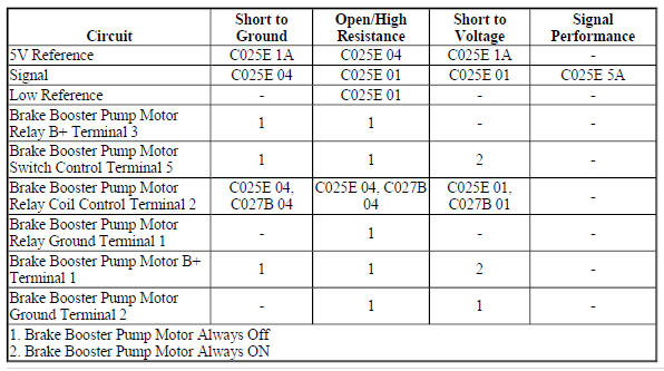 Chevrolet Trax: DTC C025E: Brake booster vacuum sensor/brake booster vacuum pump