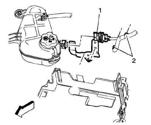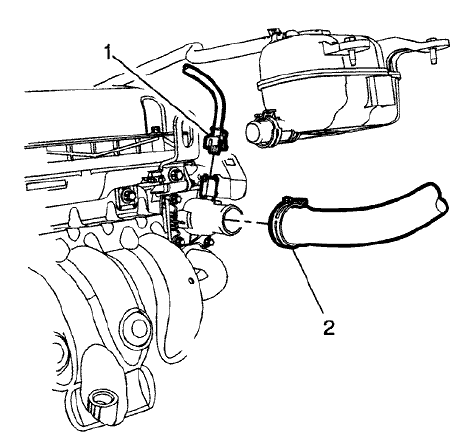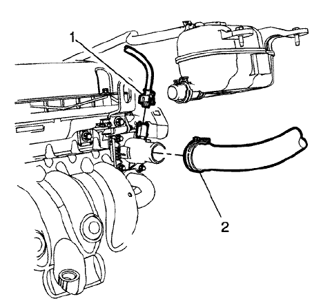 - Install the radiator inlet hose (2) and connect the thermostat heating