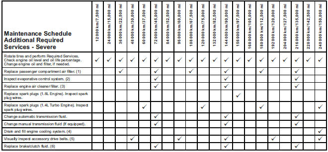 Footnotes - Maintenance Schedule Additional Required Services - Normal