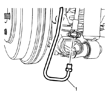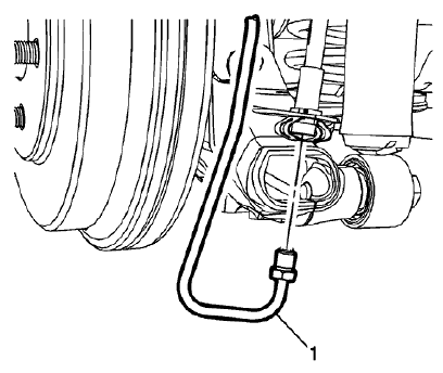 - Install the rear brake rear pipe fitting (1) to the rear brake cylinder