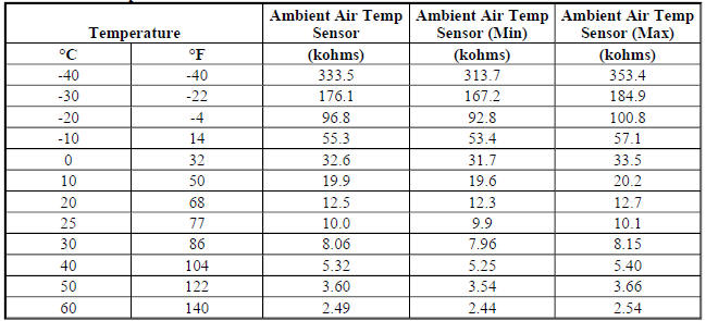 AMBIENT AIR TEMPERATURE SENSOR RESISTANCE